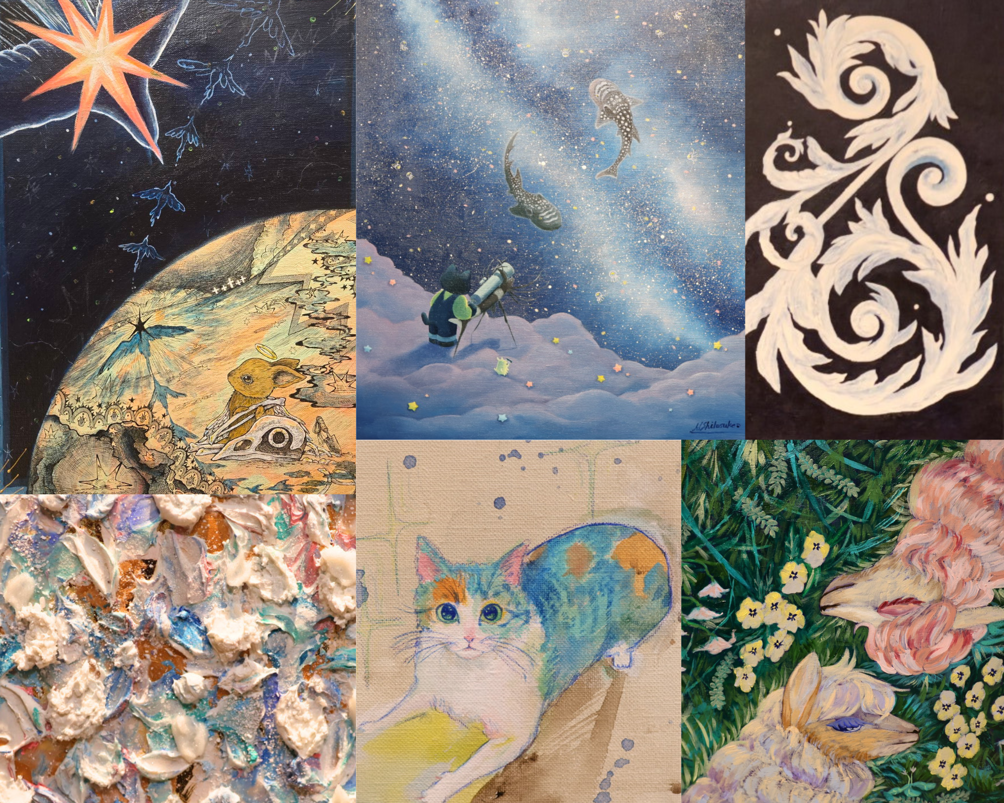 今回は活動6年未満の若手作家6名(Erina.T、眞白しろ助、ろばぱか、risa takeda、庭常まこ、poporo ※敬称略・順不同)が参加。